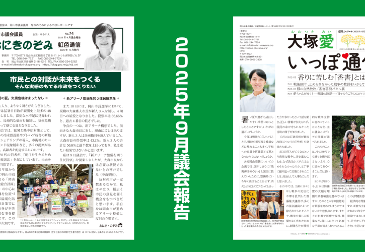 大塚 愛 岡山県議会議員、鬼木のぞみ 岡山市議会議員の2025年9月議会報告を掲載しました。